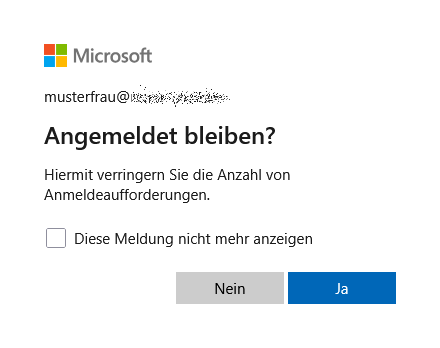 Wenn dies Ihr persönlicher Computer ist, bestätigen Sie die Frage ob Sie angemeldet bleiben möchte mit "Ja". Sonst mit "Nein" und "Diese Meldung nicht mehr anzeigen":
