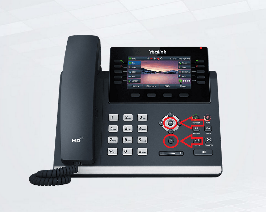 Wenn ein Tisch-Telefon nicht richtig funktioniert, kann man es neu starten indem man die Taste X für ein paar Sekunden gedrückt hält.