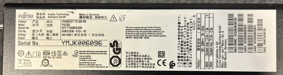Server, Fujitsu, TX1320 M3 SN weg