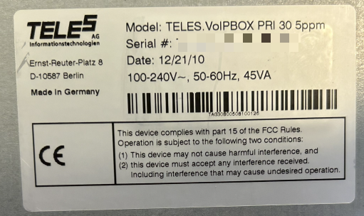 Teles VoIPBox PRI 30 5ppm